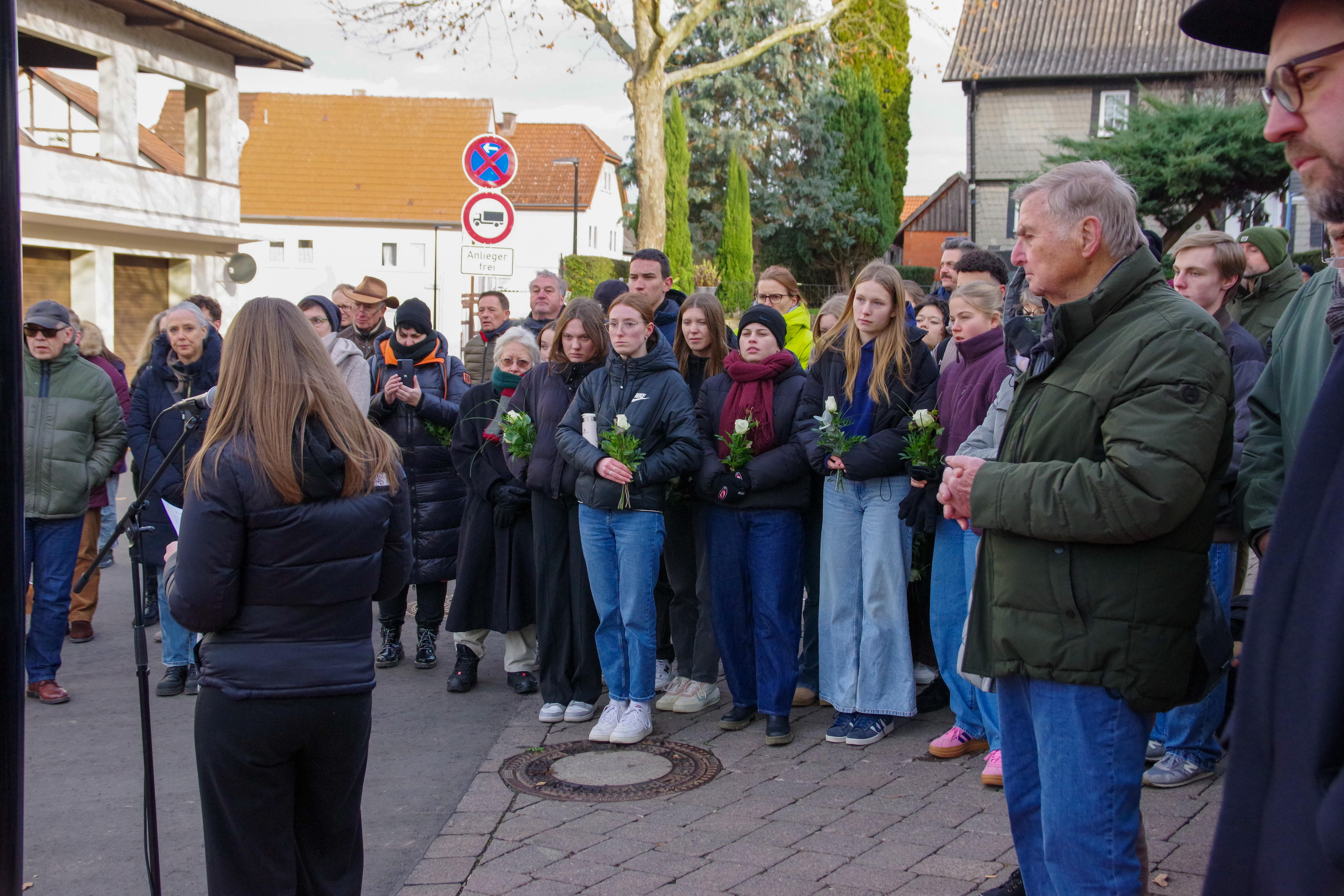 Gefertigt und verlegt wurden die Gedenkstücke von Künstler Gunter Demnig, der angefangen in 1996 bis heute mit über 100.000 dieser Steine europaweit an Menschen erinnern, die der NS-Diktatur zum Opfer fielen. „Wir stehen heute hier zusammen, an einem ganz gewöhnlichen Ort unserer Stadt – auf einem Gehweg, den viele von uns jeden Tag passieren. Und doch wird dieser Ort heute zu etwas Besonderem“, beginnt Bürgermeister Daniel Iliev seine Rede, die er an rund 40 Schülerinnen und Schüler der Werratalschule, den hessischen Minister für Wissenschaft und Forschung, Kunst und Kultur Timon Gremmels, den Kasseler Rabbiner Shaul Nekrich sowie viele Bürgerinnen und Bürger richtet. Die Erinnerung an diese Menschen und ihre Geschichten lebendig zu halten und „alles daransetzen, dass sich solche Verbrechen niemals wiederholen“ seien heute wichtiger denn je. Seinen Dank richtete er an alle Beteiligten, die städtischen Gremien, die das Geld für die Verlegung der Stolpersteine zur Verfügung gestellt haben, an den Leiter des Projektes Jörg Lorey, der gemeinsam mit der städtischen Mitarbeiterin Celine Radlik die Gedenkfeier vorbereitet und umgesetzt hat.