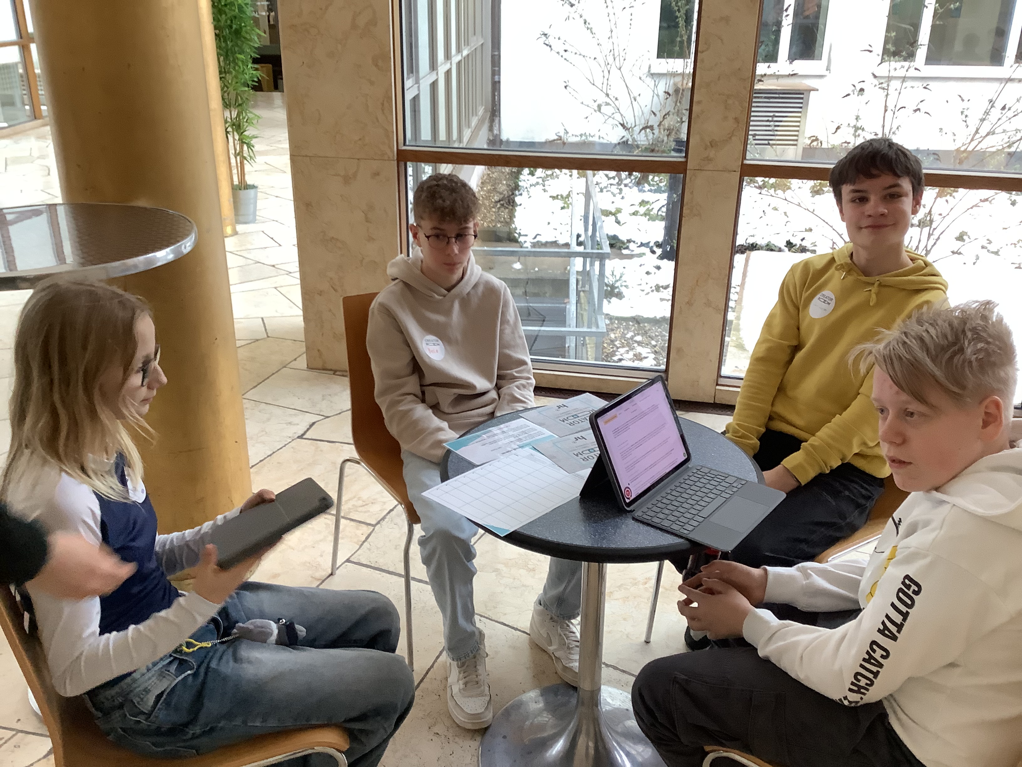 Darüber hinaus entwickelten die Jugendlichen in Kleingruppen eigene Beiträge zu aktuellen Themen wie einem möglichen Social-Media-Verbot ab 16 Jahren, Fast Fashion oder der Nutzung von E-Scootern. Die Ergebnisse wurden in Form von Social-Media-Beiträgen gestaltet und präsentiert. Dabei konnten sie ihr neu erworbenes Wissen direkt anwenden und erleben, wie anspruchsvoll es ist, sachlich, ausgewogen und verständlich zu berichten.