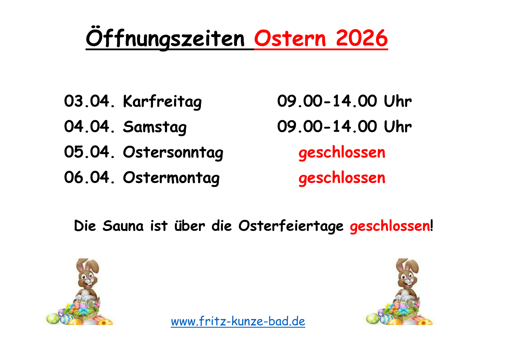 Osteröffnungszeiten im fritz-kunze-bad